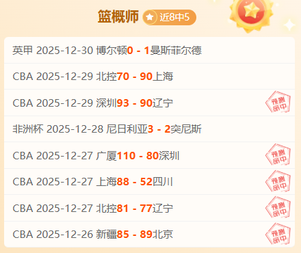 北京虽防守强悍,但核心后卫陈盈骏因鼻骨骨折缺阵,导致后场组织与进攻火力受损,其场均16.3分的稳定表现难以替代,这会削弱球队攻防转换的流畅性。浙江则阵容齐整,孙铭徽场均6.4 次助攻的节奏掌控能力,可有效破.解北京的联防体系,胡金秋内线17.7分的高效终结与桑普森的篮板保障,能对冲周琦的护框威胁,双外援塔克与布朗的联动更能制造多点sha伤。北京的连胜势头虽猛,但面对浙江丰富的硬仗经验,高强度防守难以全程维系。