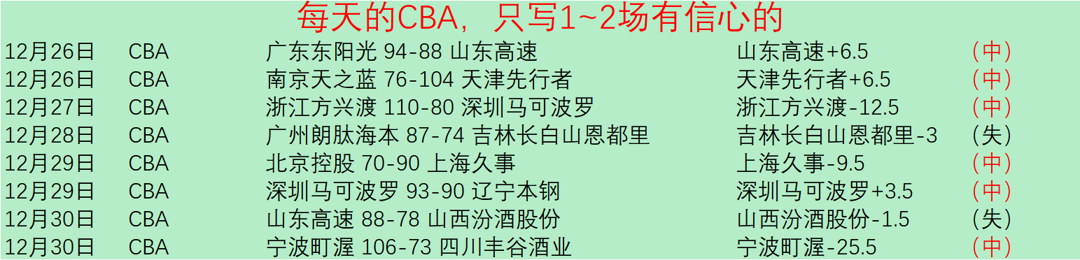 【每天1~2场CBA】每天的CBA只写1~2场有信心的,精益求精,认真分析,提高命中率。