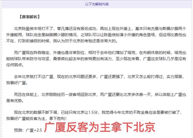 以下为解锁内容:含赛事解析+数据分析+观点参考
