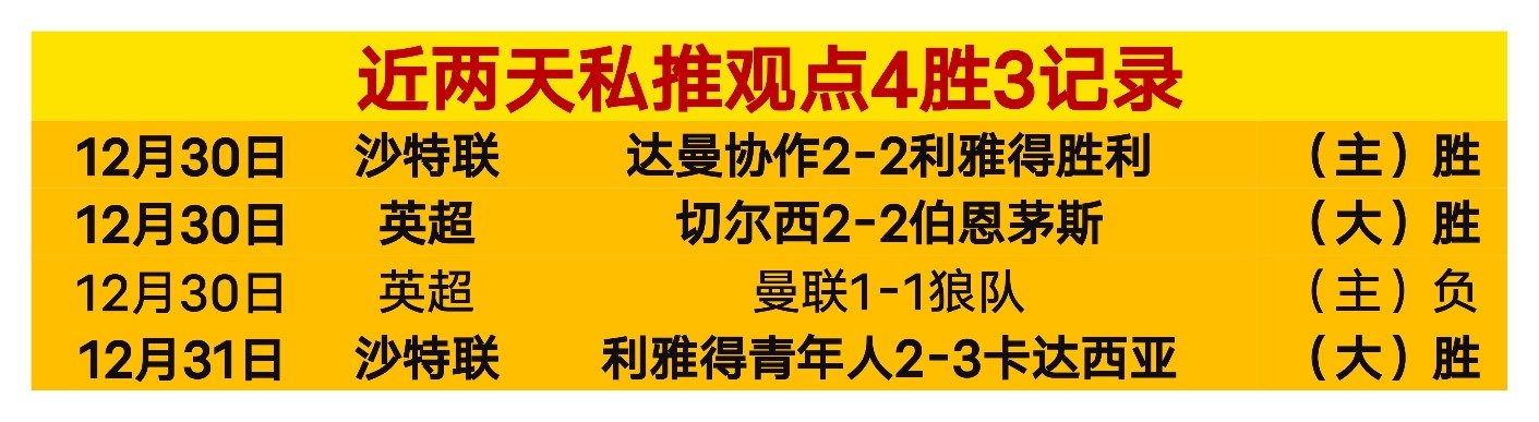 【战绩回顾】近期私推观点表现强势,昨晚沙特联卡达西亚大25继续过关,近两天拿到4场3胜的佳绩,本场焦点英超作为福利回馈粉丝,文末赞赏可获取更精准的临场观点,包周更优惠。