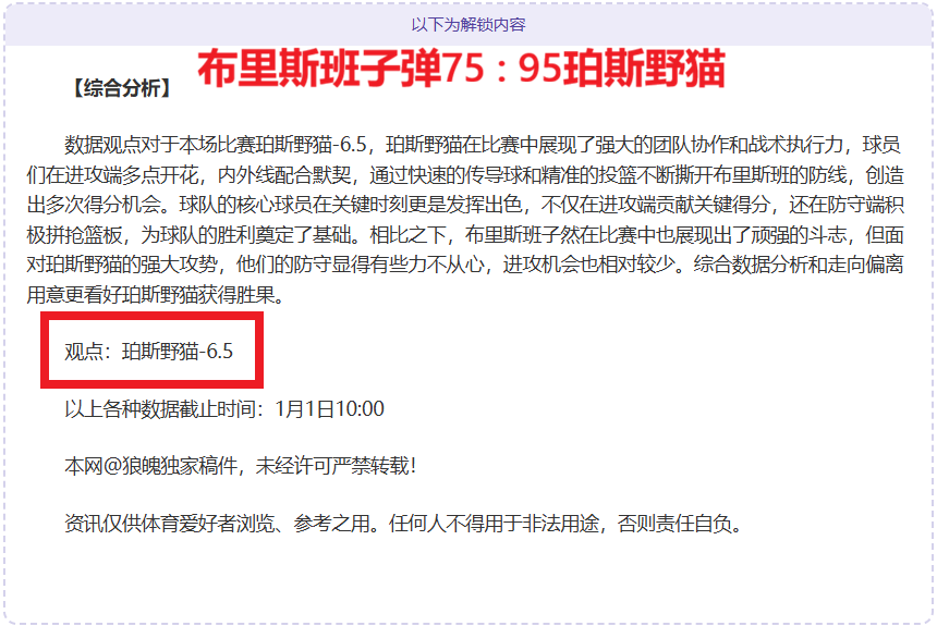 解锁内容包括:综合大数据分析+分解赛事走向+比赛建议+作者观点数据
