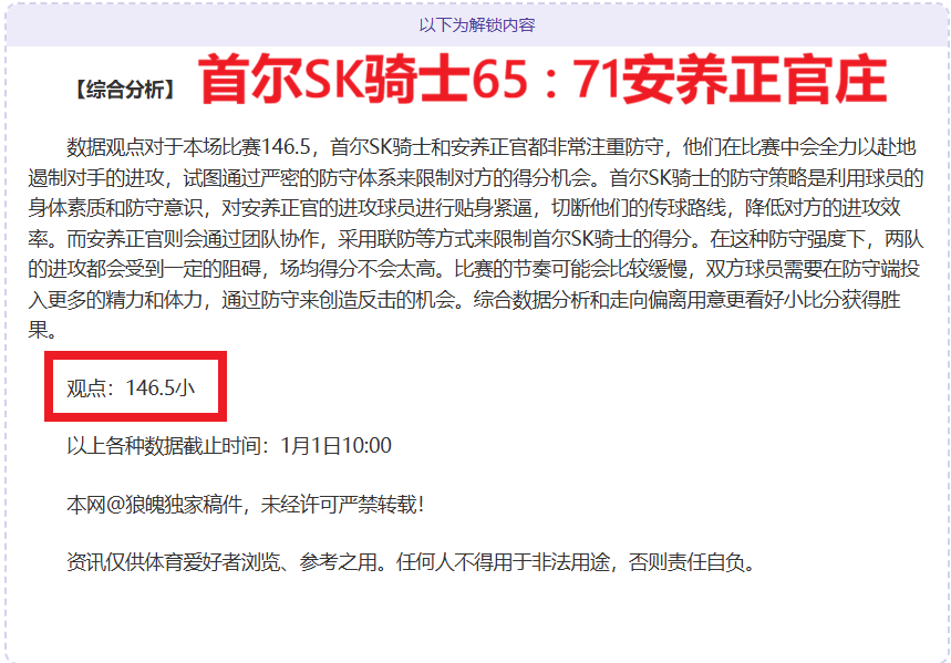 【成绩回顾】昨3场胜利!NBL(A)、二场韩篮甲取得胜利,新一期赛事继续关注赛事延续胜利,作为本网资深作者和篮球分析师实力有目共睹,擅长拆解数据用意,连胜佳绩历历在目,笔者将再接再厉争取得更佳战绩回馈粉丝,本场比赛将精选一场优质情报,敬请关注。