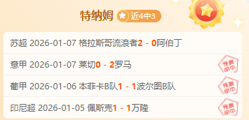 【战绩回顾】昨日意甲取胜,近4胜3。特纳姆将凭借多年深耕足球领域的专业视角,结合独家赛事分析方法,深度解析赛果走向。诚邀各位球迷朋友共同交流探讨,让我们携手冲击高效战绩!