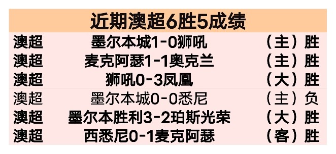 【战绩回顾】近期澳超连战连捷,近六场拿到五场胜利,今天焦点澳超,力争拿下↓