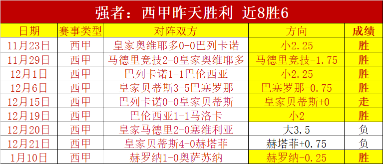 西甲昨天胜利,现在西甲8胜6,西甲认知非常清晰。昨天胜利发挥,如昨天所说,周末赛事发挥更精彩。过去三个月(10月、11月和12月)保持正向胜+月成绩,三个月胜+33,月成绩非常精彩