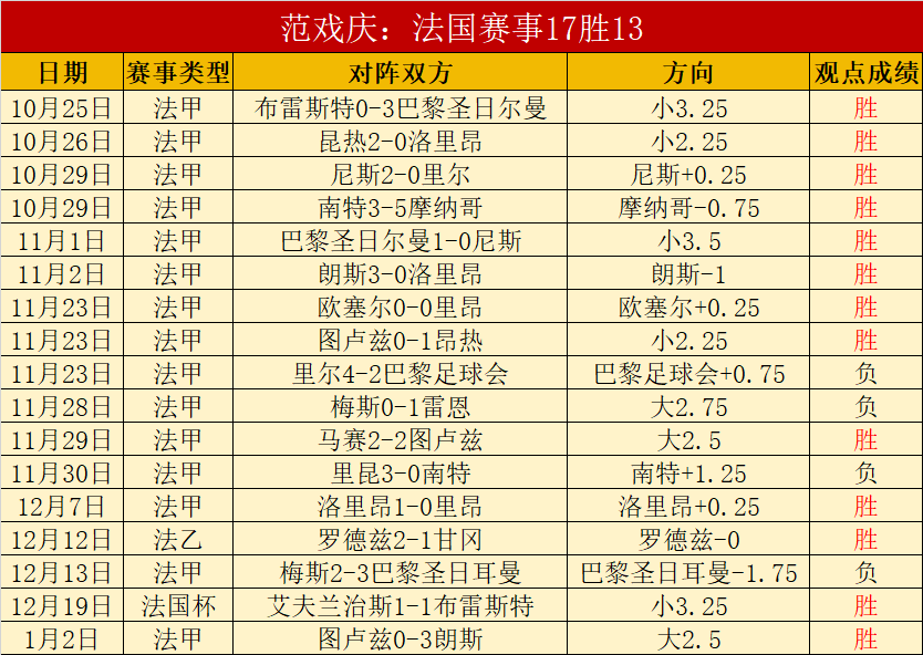 法国赛事17胜13,对法赛球队认知非常清晰。近8天胜7天合计胜+10,连续的精彩发挥值得信赖认可。11月胜+33,10月10-31日合计胜+23,胜+数值突出,胜利一直占据绝对优势