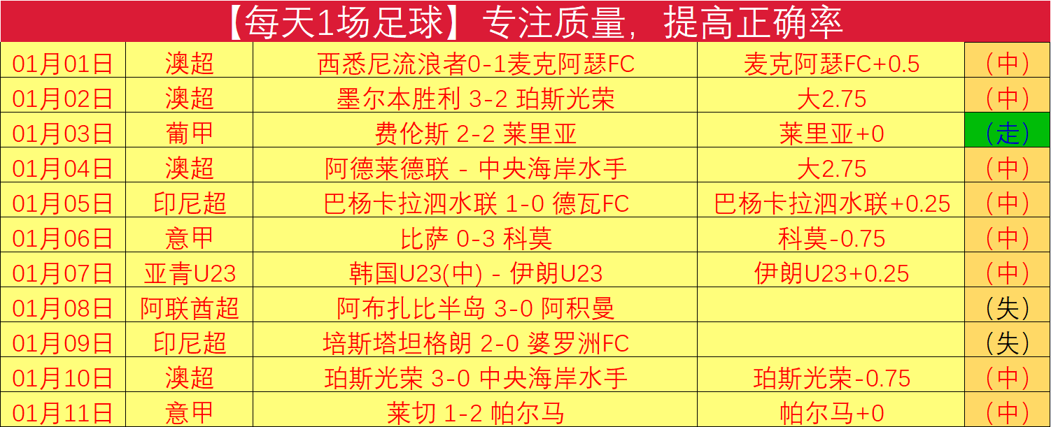 【每天1场足球】专注质量,提高正确率。每天只写1场足球,抓重点,适合长期定投参考。