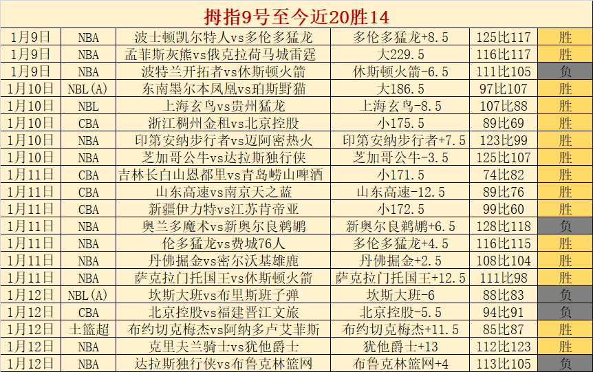 CBA近3天拿下5胜4,整体36胜24,长期保持精彩的CBA分析。9号至今近20场胜14场,近期发挥出色,近38天胜21天合计胜+20,非常惊人的胜+表现