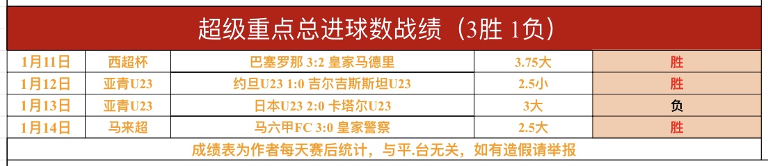 战绩回顾:昨日【超级重点总进球数】1场马来超马六甲FC大方向完美全胜,超级重点总进球数近4胜3!《精选数据方向》1场没有打出,精选数据连胜被终结!【超级重点数据】1场英联杯切尔西没有打出,数据超级重点近5胜3!《精选总进球数》1场马来超槟城没有打出!私推总进球数依然近4胜3!鸡锅不追求场次多,追求少而精准,绝不滥竽充数,必须把老铁们的每一份信任都转化为胜利!