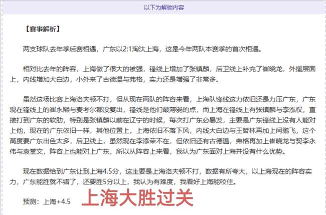 以下为解锁内容:含赛事解析+数据分析+观点参考