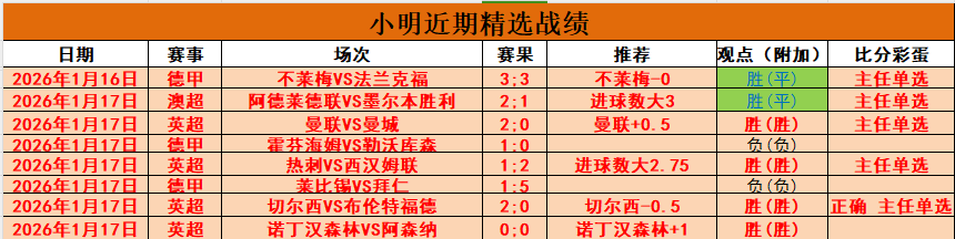 【上期回顾】收!收!昨整体9对7,精选7对5,曼联、热刺大、森林、切尔西全出,澳超打平,近8对6;赞赏2场全胜,德甲+西甲全出,赞赏近14对11。昨赞赏2场全胜,精选净增3场,双线发挥都十分出色!今继续冲
