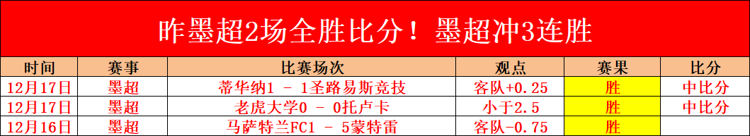 【战绩回顾】昨墨超2场全胜+墨超3连胜!昨日重点全胜+重点场6连胜(重点场量少求精选)!王牌德甲拿下焦点拜仁5-1大胜,豪取德系17胜15,周末来袭!今日比赛质量佳!乘胜追击,信心强烈,全力分析,只王牌精研有把握的比赛,继续拿下,加油冲全胜!欢迎长期关注乘风。