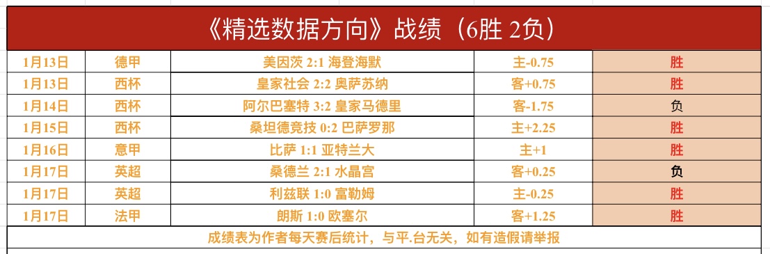 战绩回顾:昨日【超级重点数据方向】1场英超切尔西完美全胜,超级重点数据方向近8胜6!【超级重点总进球数】1场瑞士超年青人完美全胜,超级重点总进球数近7胜5!《精选数据方向》3场拿到3胜1负,英超利兹联、法甲欧塞尔胜利,英超水晶宫没有打出,精选数据方向近8胜6!私推总进球数依然近4胜3!鸡锅不追求场次多,追求少而精准,绝不滥竽充数,必须把老铁们的每一份信任都转化为胜利!