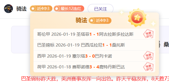 最近更新:2026-01-19 14:42 近4中3最长12连红