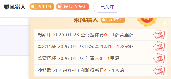 最近更新:2026-01-23 18:26 近6中4最长15连红