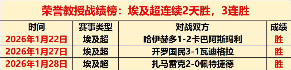 近20胜13,埃及超连续2天胜出,拿下3连胜,最高打下14连胜的表现已见证实力。各线赛事都能保证清晰的解读思路与靠谱的选择方向!截至昨天荣誉教授已经有4610场解读经验,今天继续精选5场,多元化的赛事系列,以更高连胜胜利率绩迎接5000场记录来临,关注荣誉教授,成为荣誉教授的好伙伴!