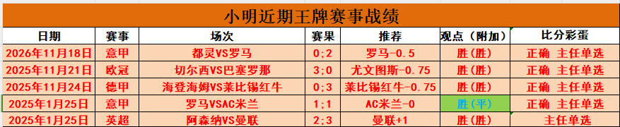 解锁内容:数据分析+比赛建议(观点+附加)+比分建议+上期【王牌】曼联拿下,王牌5连对!