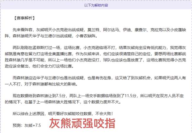 以下为解锁内容:含赛事解析+数据分析+观点参考