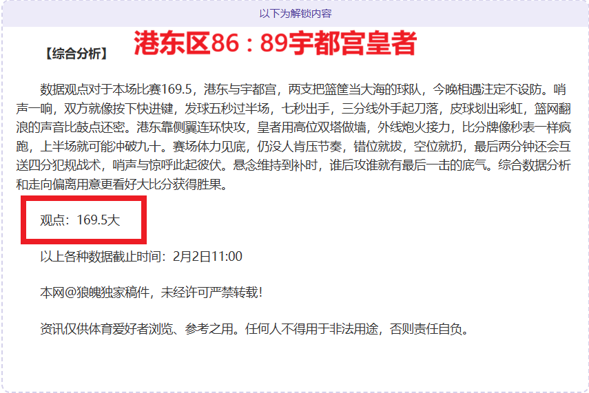 解锁内容包括:综合大数据分析+分解赛事走向+比赛建议+作者观点数据