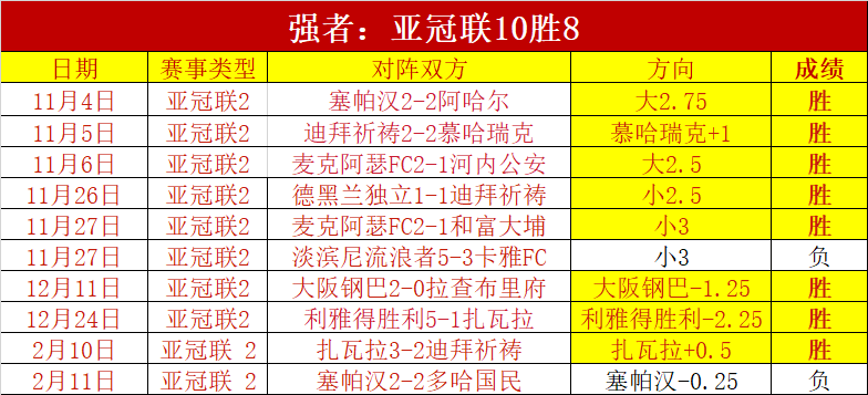 亚冠联10胜8,亚洲赛事发挥十分出色。近5天胜4天,近30场胜19场,贡献胜+8,当前状态非常出色值得信赖
