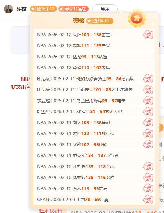 昨天8胜5,连续4天胜利发挥拿下近16场胜12场的卓越胜利,目前状态出色。