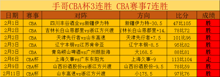CBA杯昨天胜利拿下3连胜,CBA赛事7连胜,CBA赛事高度精彩。昨天8胜5,连续3天大胜成绩,近16胜12,近31天胜18天胜+18,胜+数值得骄傲