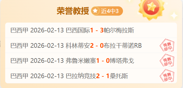 昨4胜3,澳超7胜5,最高打下14连胜的表现已见证实力。各线赛事都能保证清晰的解读思路与靠谱的选择方向!截至昨天荣誉教授已经有4680场解读经验,今天继续精选5场,多元化的赛事系列,以更高连胜胜利率绩迎接5000场记录来临,关注荣誉教授,成为荣誉教授的好伙伴!