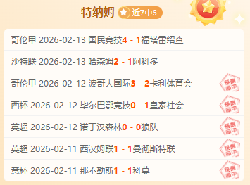 【战绩回顾】近期成绩7胜5。特纳姆将凭借多年深耕足球领域的专业视角,结合独家赛事分析方法,深度解析赛果走向。诚邀各位球迷朋友共同交流探讨,让我们携手冲击高效战绩!