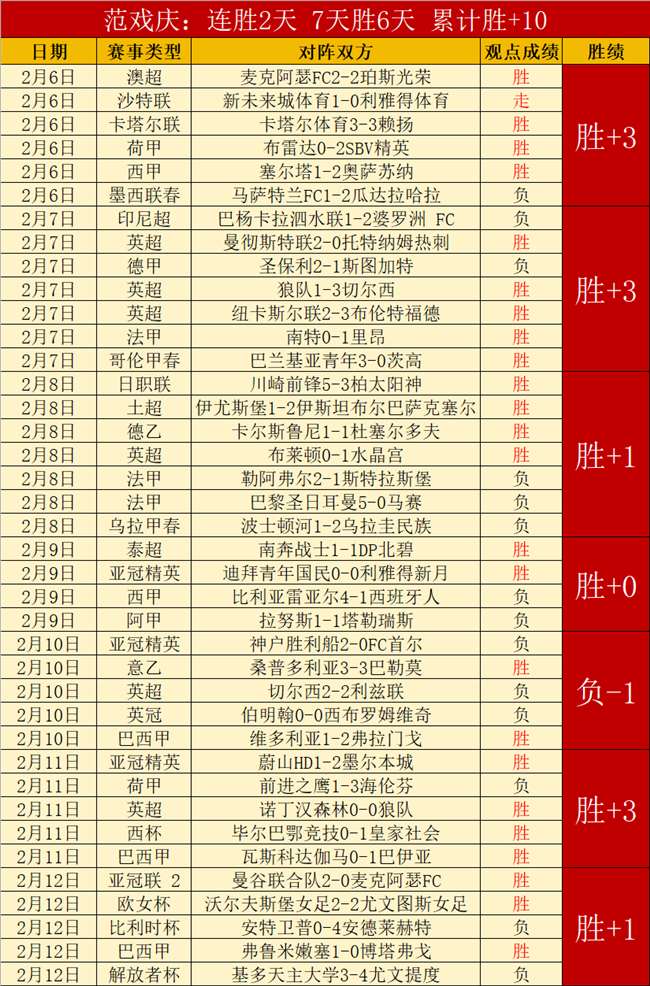 沙特联8胜6,亚洲赛事认知清晰。昨天继续胜利,连胜2天胜+4,7天胜6天胜+10,近27天胜18天胜+24,胜利占据绝对优势