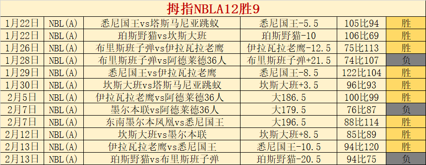 NBLA12胜9,这个赛事一直都发挥得很出色。早场完场取得4胜3,非常精彩。25天胜19天共计胜+24,继续在胜+成绩狂飙数值