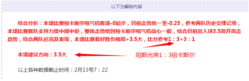 解锁内容包括:综合分析+胜负观点+比分观点