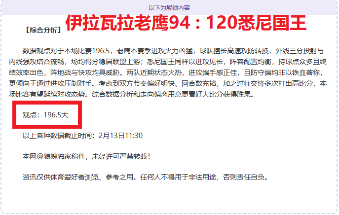 解锁内容包括:综合大数据分析+分解赛事走向+比赛建议+作者观点数据