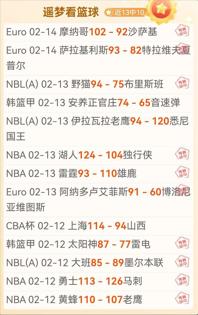 最近更新:2026-02-14 13:51 近13中10最长11连红