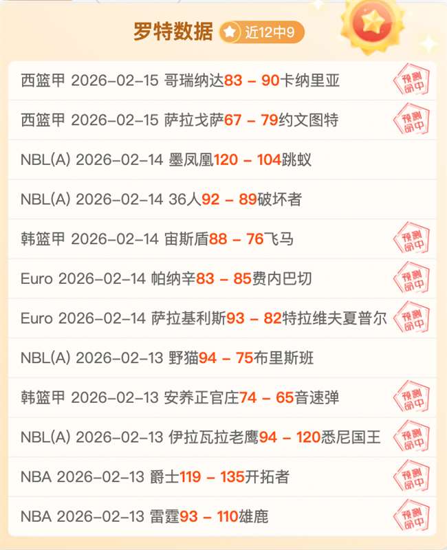 最近更新:2026-02-15 11:20 近12中9
