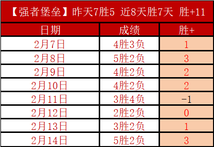 昨天7胜5,连胜2天,近8天胜7天累计胜+11,上周末两天14胜9很精彩,周末表现更出色