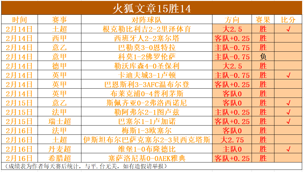 【小女子状态回顾】近期火狐的状态依然有保证,昨天送出的7场赛事全都顺利打出,文章喜获11连胜,近15胜14!今天别忘了继续关注火狐的动态哦!