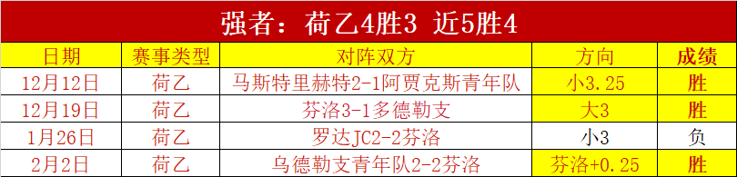 阿贾克斯青年队本赛季荷乙表现惨淡,25轮战罢仅取得4胜7平14负的战绩,积19分位列联赛第20位,整体胜利率仅16%,主场13轮比赛3胜5平5负,胜利率23.1%,主场净负3球,攻防两端均处于联赛下游水平,总进球33个、失球50个,净胜球-17,近6轮联赛2胜1平3负,近10场赛事更是仅3胜1平6负,赛场表现毫无亮点。然而这样一支联赛垫底的队伍,在本场的初始玩家数据中却获得了半场0.5的让位和全场1球的让位,与球队低迷的实际战力形成鲜明反差。同时欧玩数据的初始主胜指标处于高位区间,却搭配着偏深的初始让位数据,这种组合与球队的联赛排名、主场表现严重不符,且进球数初始数据给到3/3.5,与球队近10场仅40%的大比分率形成矛盾,此外球队往绩近5次对阵坎布尔仅2胜1平2负,并无优势可言,外界给出的这份初始数据设定,让其背后的逻辑变得十分蹊跷。
