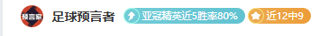 12中9+亚冠精英近5场胜率80%!状态依然巅峰;近期对比赛也是拿捏程度相当到位;今天我们继续扬帆起航,继续乘胜追击,追求长期稳定的表现是笔者不变的目标,足球预言者将不断为大家精心挑选值得信赖的赛事,为大家提供参考。