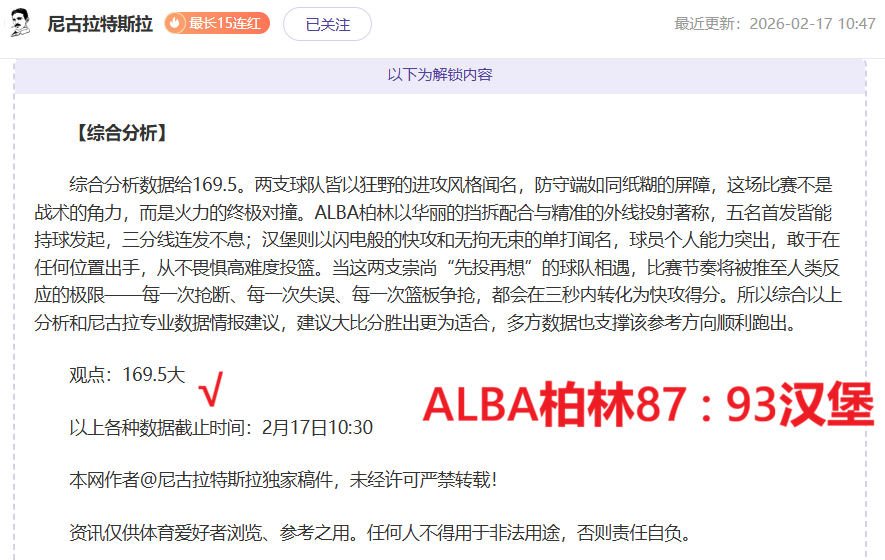 解锁内容包括:综合分析+比赛建议(数据观点+附加观点)