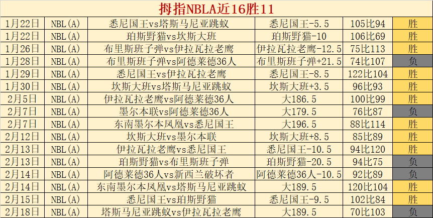 NBLA16胜11,经验丰富分析思维清晰。近6天胜4天胜,30天胜22天共计胜+23,继续在胜+成绩狂飙数值