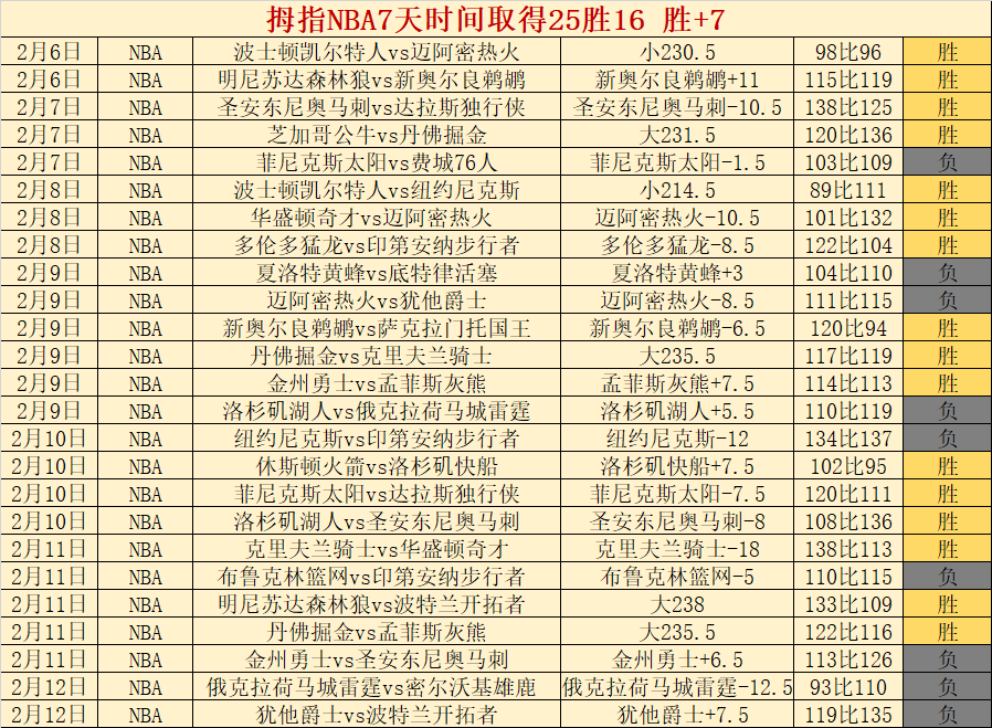 本月6-12号7天时间NBA25胜16,贡献胜+7,NBA发挥热别精彩。近6天胜4天胜,30天胜22天共计胜+23,继续在胜+成绩狂飙数值