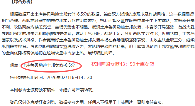 解锁内容包括:双方近期数据走势综合分析+比赛建议+数据观点