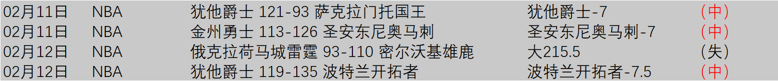 2026-02-12休斯顿火箭102-105 [56-46]洛杉矶快船,首节对决火箭虽然以11-4的攻势打开局面但没能守住领先,不过快船几次抹平比分但都没能扭转战局,火箭打出跨节17-6的攻势拉开两位数的优势占据上风,这波攻势之后火箭一直维持着10分左右的领先,快船则依靠科林斯压哨三分追至7分进入下半场。休息归来双方拉锯分差一直在10分上下徘徊,不过末节开局火箭遭遇4分钟仅4分的得分荒,快船发力送上17-4的攻势一举反超比分,火箭随后及时回暖回敬11-2的攻势夺回主动权,最后决胜时刻申京制造关键犯规但两罚一中仅扳平比分,小卡最后时刻招牌中投达成2+1。最终,快船复仇火箭拿下比赛。杜兰特21分8板6助、谢泼德17分2板4助、史密斯16分12板、申京16分9板6助3帽、伊森13分2板3助、阿门12分6板5助、泰特4分1板1助、