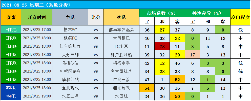 注:市场数据与关注差异均有出现深色标记的选项为最大概率出现冷门!