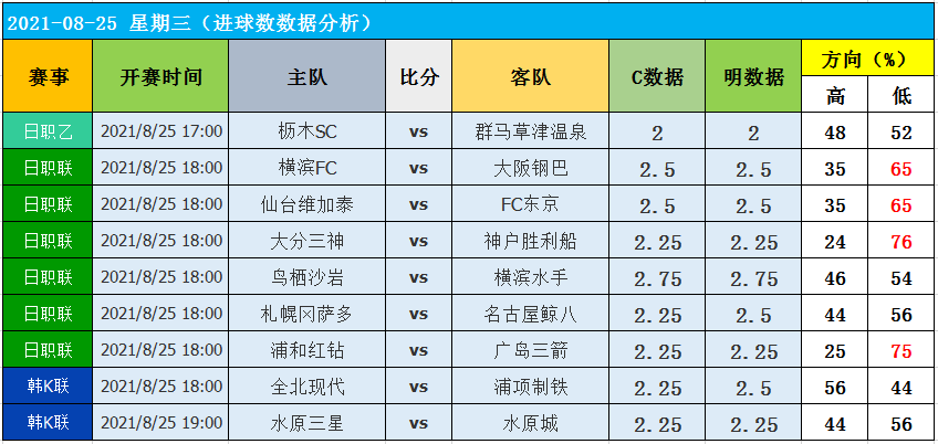大数据栏目:本栏目将当天的赛事列出经由大数据分析得出的任何高概率选项供网友参考(期间若连续2期总胜率低于50%,将免费1期补偿)。现时大数据分析逐渐融入我们的生活当中,任何一个动作都能参照历史数据得出下一个行为是什么。足球作为一项竞技体育赛事,自然也离不开大数据的分析,在可供查找的数据中我们可以经过特殊的算法得出赛事的某些选项高频概率,而本栏目正是因此而创建。