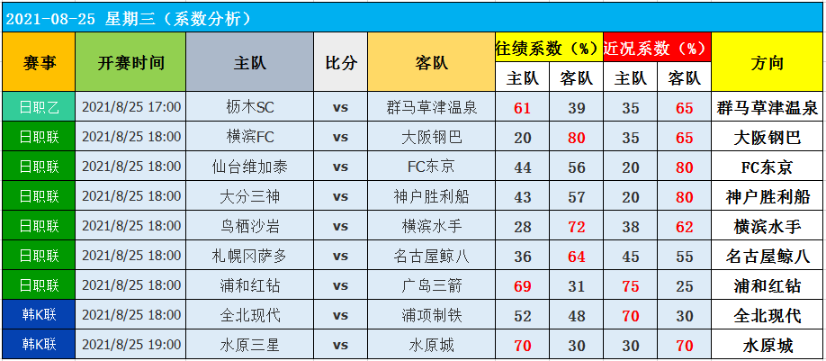 通过对两队的历史成绩、交手成绩及升降级等得出往绩系数;而近况系数则是通过近期(10场左右)成绩分析通过公式计算得出近况系数。