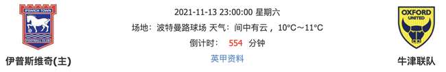 北京时间11月13日23点00分,英格兰甲级联赛的一场焦点之战,伊普斯在主场迎战牛津联。两支球队实力接近,谁能占到先机?