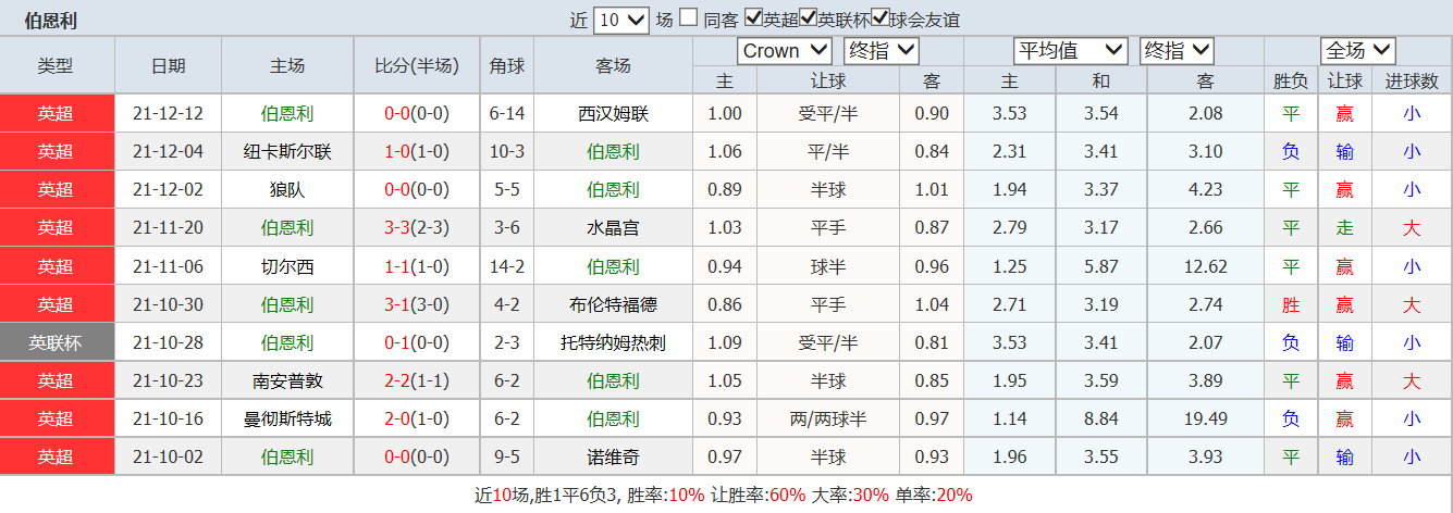 而伯恩利作为英超中下游球队,球队整体的实力显得逊色一些,本赛季联赛赛事取得1胜8平6负的成绩,积11分,球队近期状态以平局为主,近十场赛事七场不败。上场联赛面对西汉姆联,球队在场面上处于劣势,但球队整体的攻势和防守尚可,全程抵制住了对手西汉姆联,未能让其实现破门机会,最终以0-0的比分战平西汉姆联。