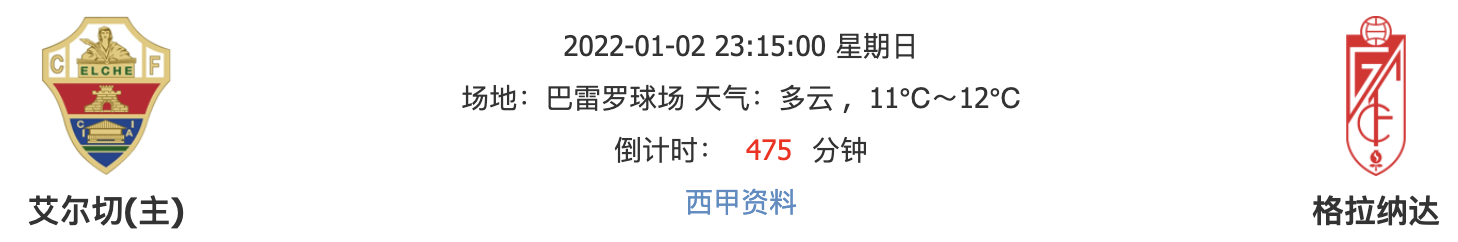 北京时间1月02日23点15分,西班牙甲级联赛的一场焦点之战,埃尔切在主场迎战格拉纳达。格拉纳达整体状态不错,能够再度有所斩获?