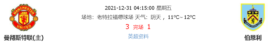 曼彻斯特联刚在12月31日进行了一场英超赛事,目前休战3天,上一场比赛坐镇主场对战降级区的伯恩利,双方战罢90分钟,曼彻斯特联以3:1轻松拿下对手,全取3分。